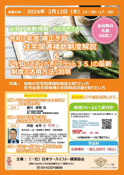 【全国】必見!最新情報WEBセミナー 令和7年度補正予算 住宅関連補助制度解説&「今知っておくべき【フラット35】の最新制度と活用方法」説明 開催のご案内